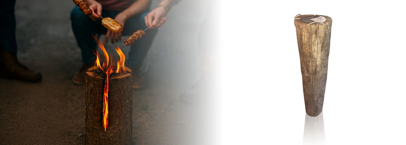 La Bûche Scandinave, ou torche suédoise, était à l'origine utile aux bûcherons de Scandinavie, qui utilisaient cette méthode pour pouvoir allumer un feu dans des conditions difficiles notamment sur la neige, la bûche étant isolée du sol.