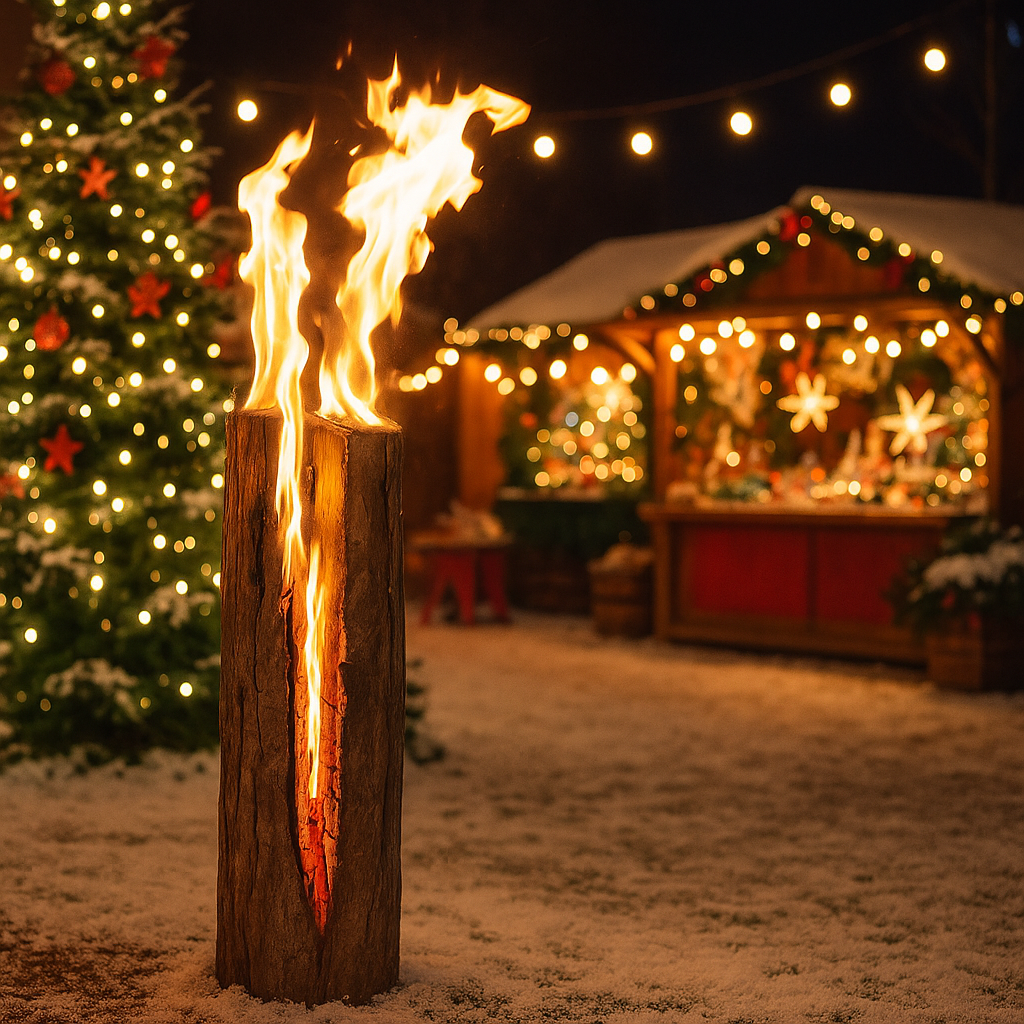 > Créez un point chaud et lumineux* avec une Bûche Scandinave (en soirée, lors d'une fête à thème) pour éclairer et réchauffer les visiteurs.
